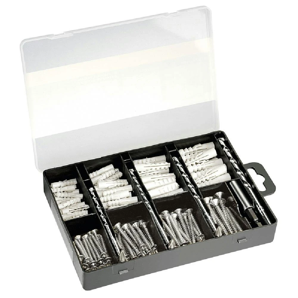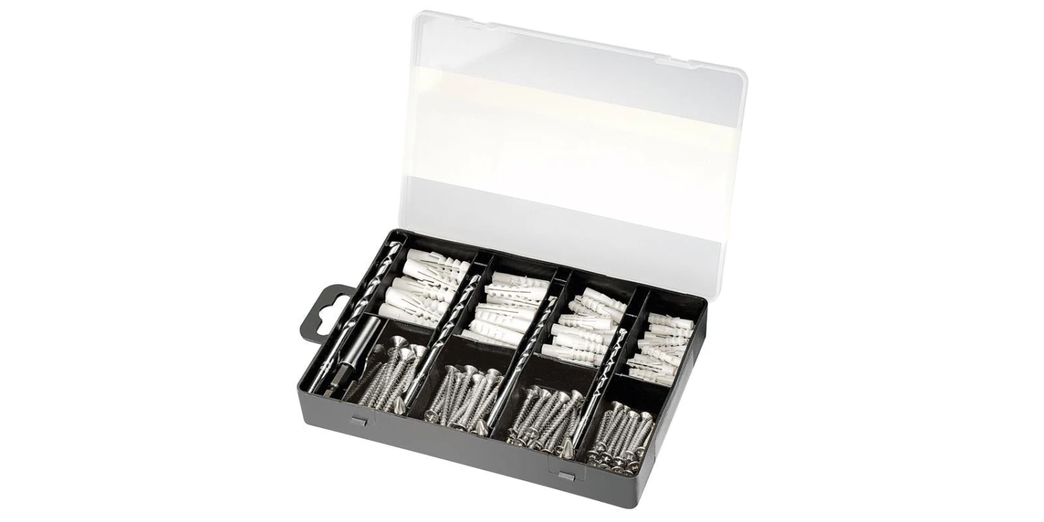 173-teiliges Befestigungsset4 Steinbohrer Ø 5/6/7/8mm90 Dübel Ø 5/6/7/8mm75 SchraubenUniversalhalter, magnetisch3 Schrauberbits L=25mmje 1 x PZ 2/2/2Gewicht 0,42kgIn praktischer Sortierbox.Bewährte Bosch-Qualität!