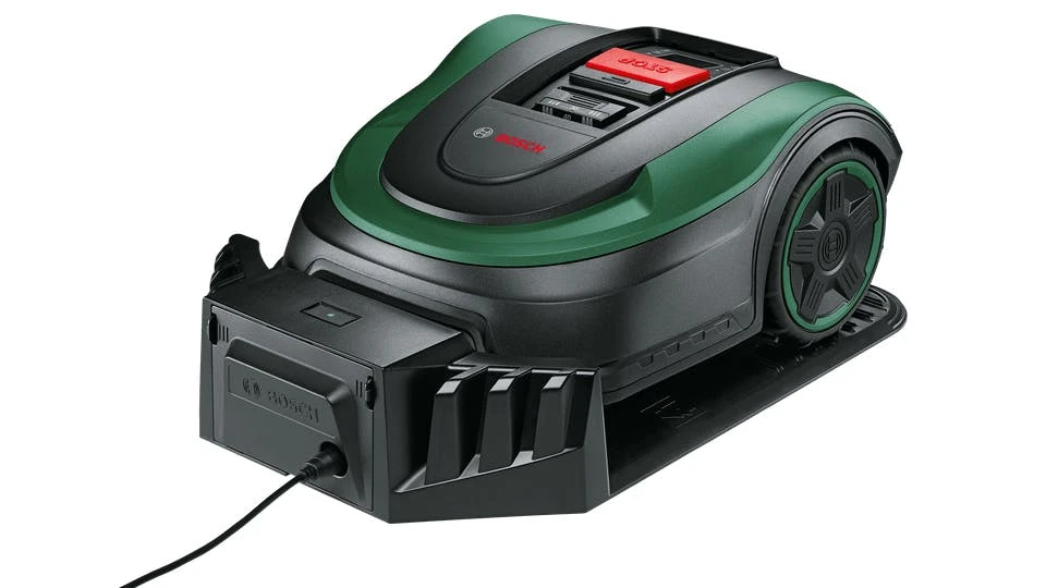 Bosch Indego S+ 500. Typ: Rasenmähroboter, Schneideweite: 19 cm, Minimum Schnitthöhe: 3 cm. Energiequelle: Akku, Batteriespannung: 18 V, Ladezeit: 1 h. Breite: 364 mm, Tiefe: 445 mm, Höhe: 202 mm