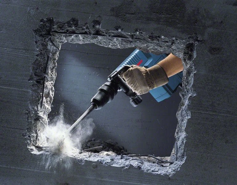 Bosch Schlaghammer mit SDS-max GSH 11 E Professional. Aufprallenergie (max.): 16,8 J, Schlagzahl: 1890 BPM. Energiequelle: AC, Eingangsleistung: 1500 W. Tiefe: 570 mm, Höhe: 270 mm. Gewicht (mit Batterie): 10,1 kg