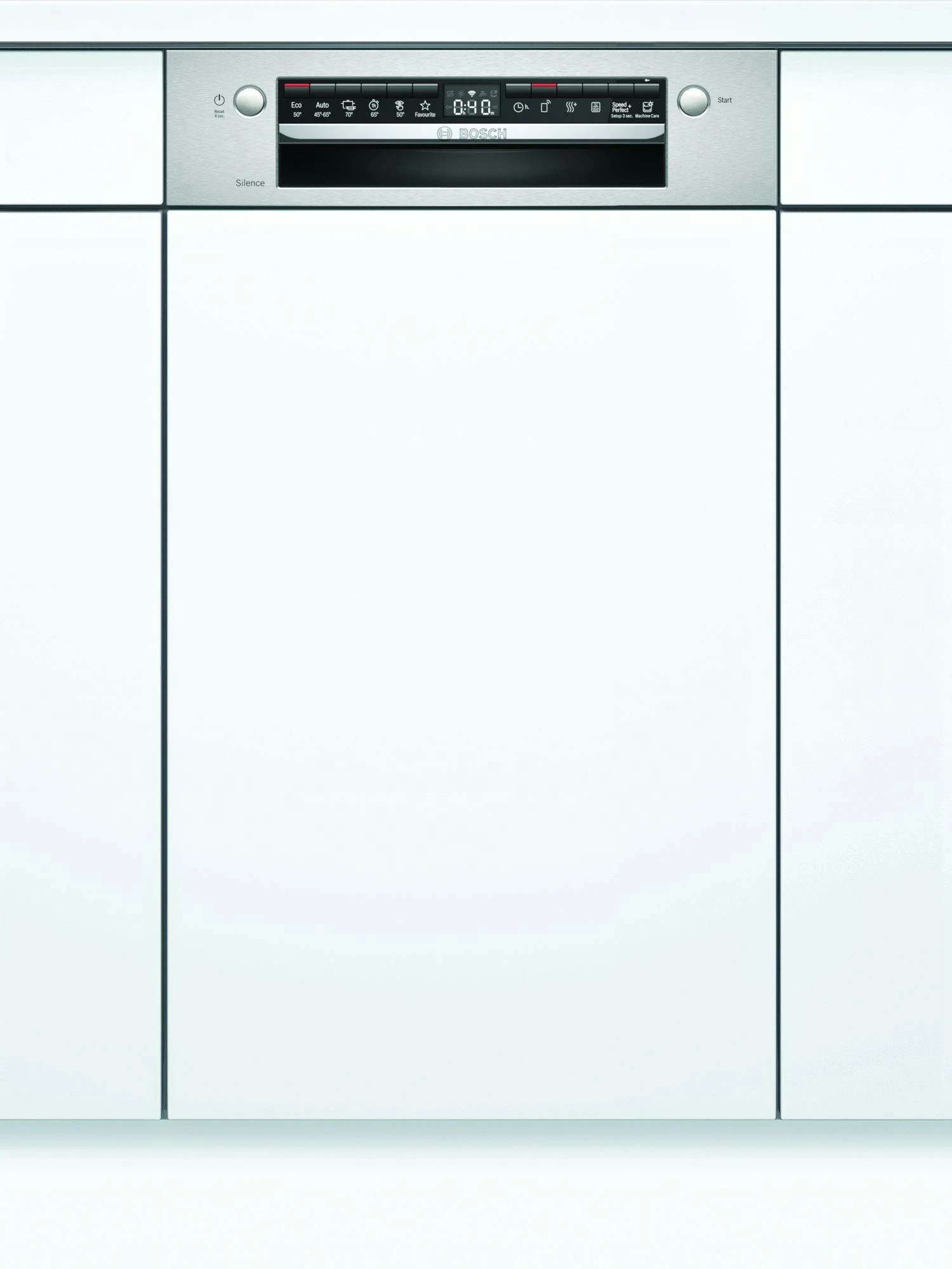 Bosch Serie 2 SPI2IKS10E. Geräteplatzierung: Halb integriert, Produktgröße: Single (45 cm breit), Kabellänge: 1,75 m. Anzahl Maßgedecke: 9 Maßgedecke, Lärmemissionsklasse: C, Geräuschpegel: 48 dB. Energieeffizienzklasse: F, Wasserverbrauch pro Zyklus: 9,5 l, Energieverbrauch für 100 Zyklen: 78 kWh. Breite: 448 mm, Tiefe: 573 mm, Höhe: 815 mm