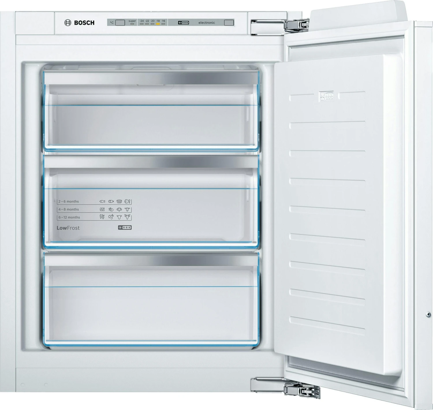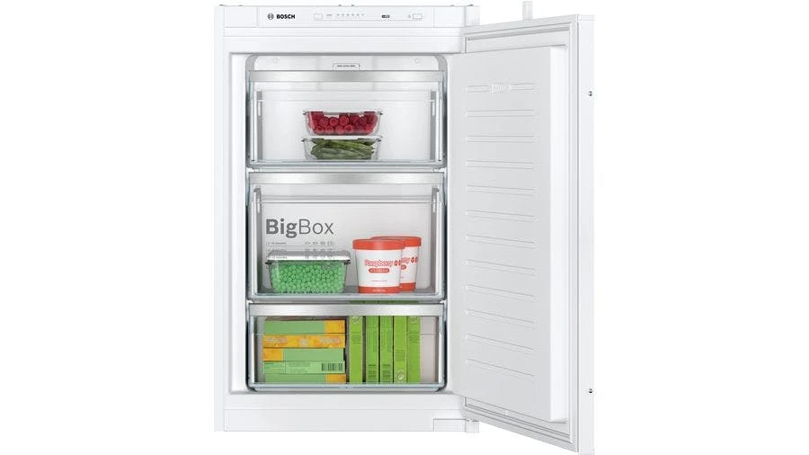Bosch Serie 6 GIV11ADC0. Typ: Senkrecht. Nutzinhalt Gefrierfach: 70 l, Klimakategorie: SN-T, Gefriervermögen: 12 kg/24h, Lagerzeit bei Störung: 21 h, Geräuschpegel: 37 dB, Sternekennzeichnung: 4*. Türanschlag: Rechts. Energieeffizienzklasse: C, Jährlicher Energieverbrauch: 105 kWh