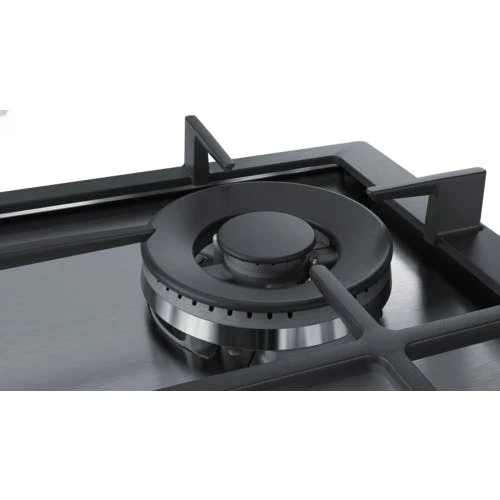 Bosch Serie 6 PCH6A5C90D. Produktfarbe: Schwarz, Edelstahl, Geräteplatzierung: Integriert, Kochfeldtyp: Gaskochfeld. Steuerung: Drehregler, Steuerungsposition: Vorne oben. Anschlusswert (elektrisch): 1 W, Anschlusswert (Gas): 8000 W, AC Eingangsspannung: 220-240 V. Breite: 582 mm, Tiefe: 520 mm, Höhe: 45 mm