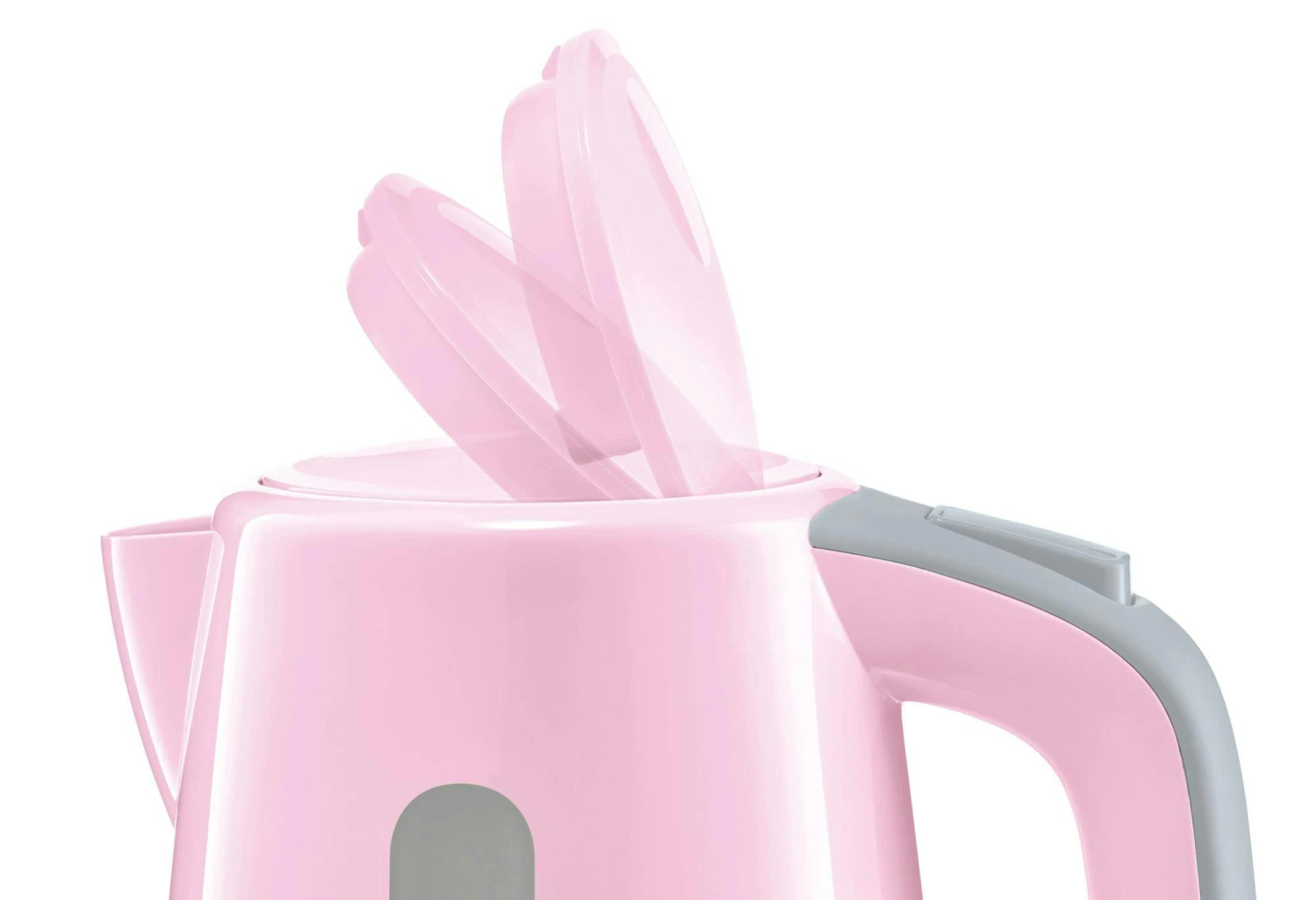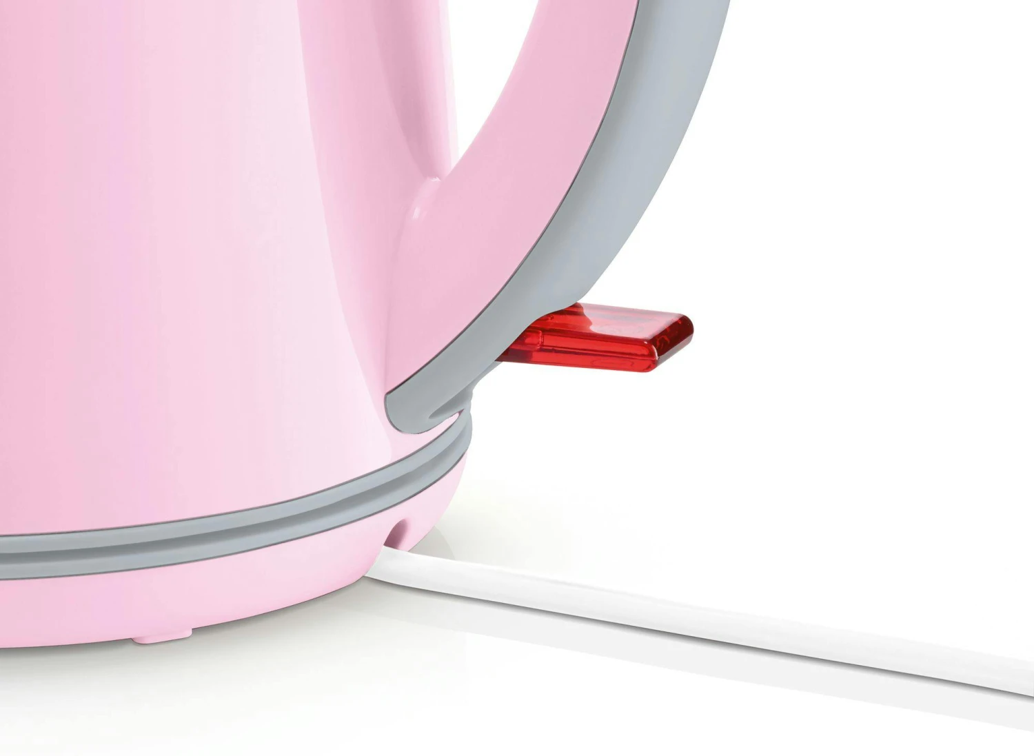 Bosch TWK7500K. Fassungsvermögen Wassertank: 1,7 l. Leistung: 2200 W. Produktfarbe: Grau, Pink, Gehäusematerial: Kunststoff, Wasserstandsanzeige, Überhitzungsschutz. Drahtlos