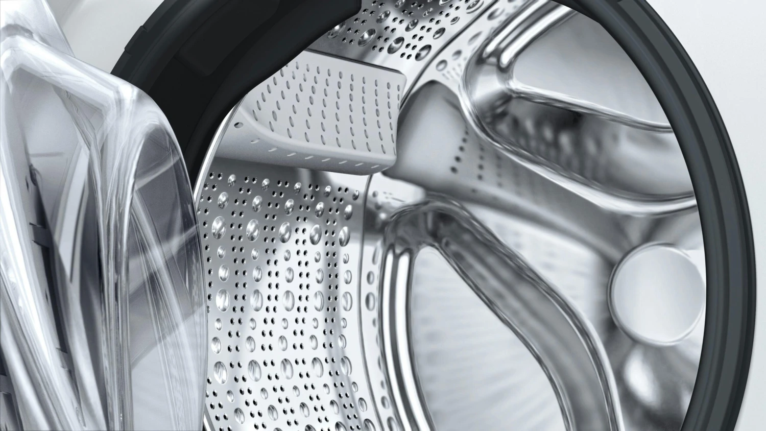 Leistung und Verbrauch Nennkapazität: 9 kg Energieverbrauch von 203 kWh/Jahr auf der Grundlage von 220 Standard-Waschzyklen für 60°C- und 40°C- Baumwollprogramme bei vollständiger Befüllung und Teilbefüllung sowie dem Verbrauch der Betriebsarten mit geringer Leistungsaufnahme. Der tatsächliche Energieverbrauch hängt von der Art der Nutzung des Geräts ab. Energieverbrauch des Standardprogramms Baumwolle 60°C 1.05 kWh bei vollständiger Befüllung und 1.14 kWh bei Teilbefüllung sowie 0.49 kWh im Standardprogramm Baumwolle 40°C bei Teilbefüllung gewichtete Leistungsaufnahme im Aus-Zustand / unausgeschaltetem Zustand: 0.12 W / 0.5 W Wasserverbrauch von 10560 Liter/Jahr auf der Grundlage von 220 Standard-Waschzyklen für 60°C- und 40°C-Baumwollprogramme bei vollständiger Befüllung und Teilbefüllung. Der tatsächliche Wasserverbrauch hängt von der Art der Nutzung des Geräts ab. Schleudereffizienzklasse: B max. Schleuderdrehzahl: 1400 U/Min.** max. Restfeuchte: 53 % Die Standard-Waschprogramme, auf die sich die Informationen auf dem Etikett und im Datenblatt beziehen, sind Baumwolle bunt 40° und Baumwolle bunt 60°. Diese Programme eignen sich zur Reinigung normal verschmutzter Baumwollwäsche und sind in Bezug auf den kombinierten Energie- und Wasserverbrauch am effizientesten. Die tatsächliche Temperatur kann bei dieser Kombination von der angegebenen Programmtemperatur abweichen, Waschzeiten werden zugunsten eines niedrigeren Energieverbrauchs verlängert. Dabei ist immer eine Waschwirkung A sichergestellt. Programmdauer des Standardprogramms Baumwolle 60 °C 240 min bei vollständiger Befüllung und 240 min bei Teilbefüllung sowie im Standardprogramm Baumwolle 40 °C 240 min bei Teilbefüllung Dauer des unausgeschalteten Zustands: 155 min Geräuschwert Waschen im Standardprogramm Baumwolle 60°C bei vollständiger Befüllung in dB (A) re 1 pW: 47 Geräuschwert Schleudern im Standardprogramm Baumwolle 60°C bei vollständiger Befüllung in dB (A) re 1 pW: 69 Programme Standardprogramme: Baumwolle, Pflegeleicht, Fein/Seide, Wolle-Handwäsche Spezialprogramme: AllergiePlus, Trommel reinigen (mit Erinnerungsfunktion), Hemden/Blusen, Schleudern/Abpumpen, Schnell/Mix, Sportswear, Spülen, ExtraKurz 15’/30′ Optionen Home Connect: Fernstart und Fernüberwachung, Energiemanagement, Ferndiagnose Fleckenautomatik mit 4 Flecken – zuschaltbar zu den gängigen Standard-Programmen TouchControl-Tasten: Ein/Aus, Fertig in, Fleckenauswahl, Intensiv Plus, Spülen Plus, Fernstart, Start / Pause mit Nachlegefunktion, Temperatur, SpeedPerfect, Vorwäsche, Drehzahlabwahl/Spülstop Komfort und Sicherheit 4D Wash System: höchste Waschleistung durch effektive Durchfeuchtung der Wäsche und Nutzung des Waschmittels. VarioTrommel: schonendes und effizientes Waschen Trommelinnenbeleuchtung: LED Trommelreinigung mit Erinnerungsfunktion EcoSilence Drive: leiser Motor mit langer Lebensdauer AntiVibration Design: mehr Stabilität und Laufruhe Programmwähler mit integriertem Ein-/ Ausschalter Großes, übersichtliches LED-Display für Programmablauf, Temperaturwahl, max. Schleuderdrehzahl, Restzeitanzeige und 24 h Endezeitvorwahl, Fleckenauswahl und Verbrauchsanzeige Nachlegefunktion: Die Nachlegefunktion ermöglicht Ihnen das Nachlegen von Wäschestücken sogar nach Start des Waschprogramms. Nachlegefunktion Verbrauchsanzeige: Angabe zu Strom- und Wasserverbrauch Anzeige für Überdosierung ActiveWater¿Plus: ressourcenschonendes Wassermanagement Automatische Beladungserkennung für eine präzise Regulierung des Wasserverbrauchs bei jeder Waschladung. Durchflusssensor für optimalen Wasserverbrauch Schaumerkennung Unwuchtkontrolle Kindersicherung Signalton Leichtreinigungsschublade Flüssigwaschmitteleinsatz 32 cm-Bullauge, silber-schwarzgrau mit 171° Türöffnungswinkel AquaStop